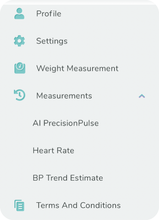 - Open the Health Gauge app and click Menu icon navigate to the Weight Measurement page.